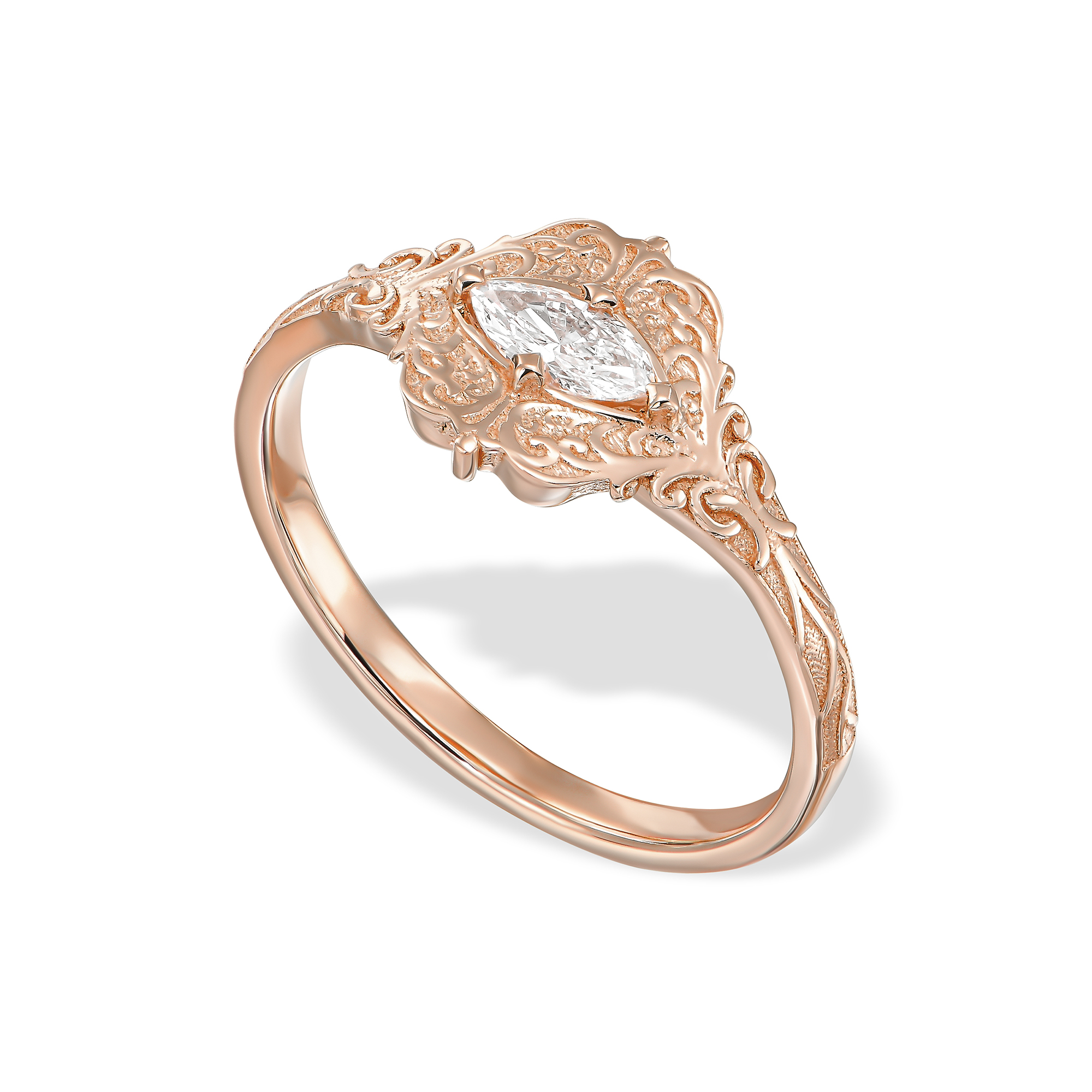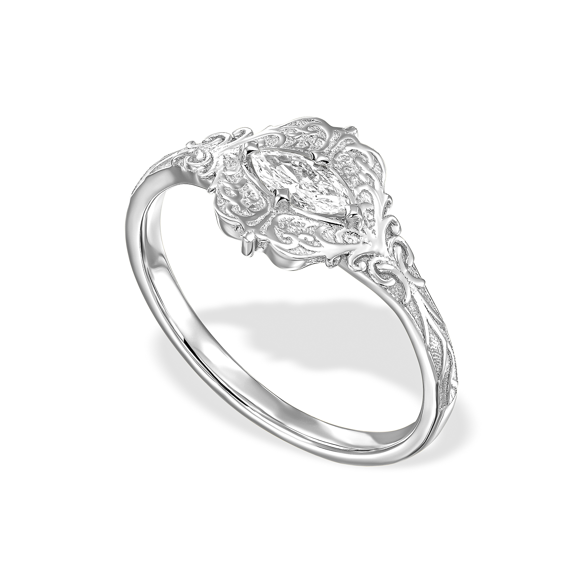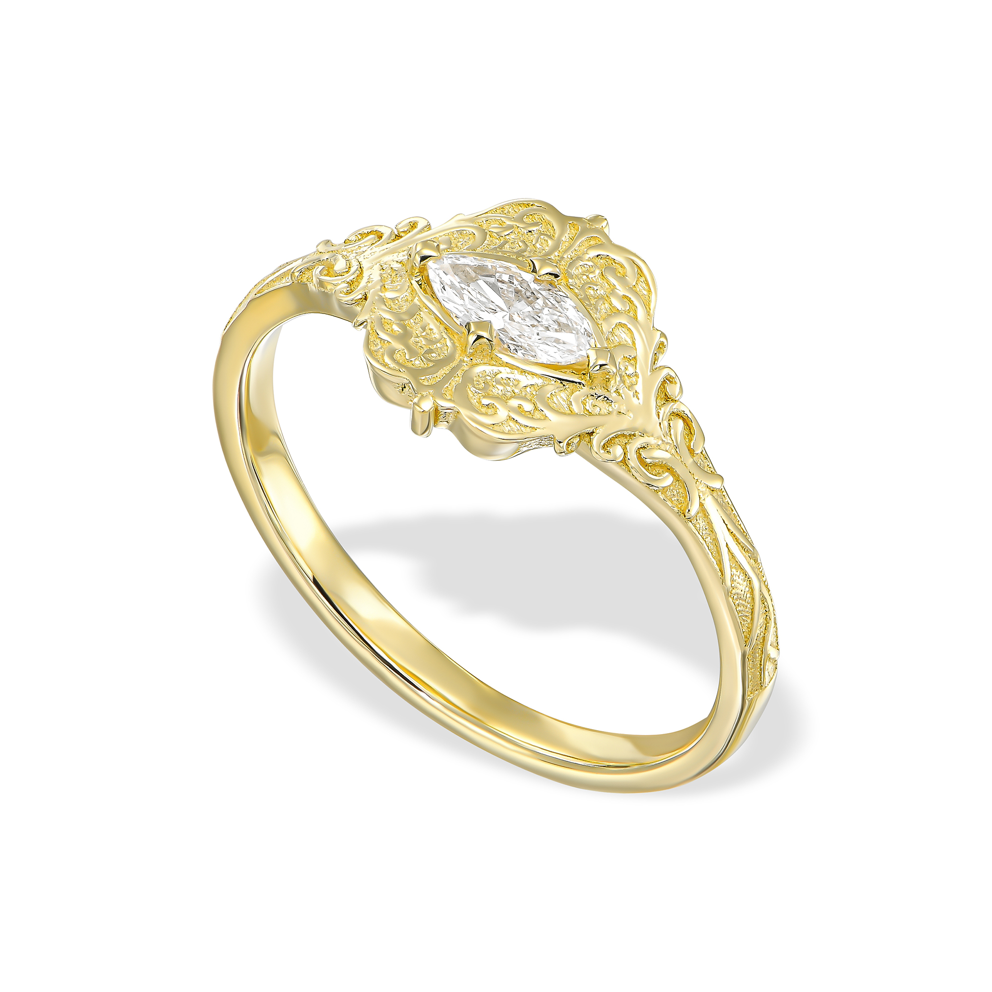 טבעת יהלום מרקיזה לבן עטוף בזהב עם אלמנטים של וינטאג׳