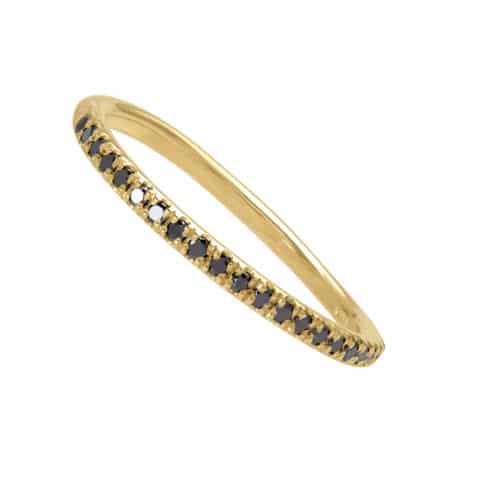 * טבעת זהב 14 קארט משובצת 21 יהלומים שחורים של נקודה, סה״כ משקל היהלומים: 0.21ct, עובי טבעת : 1.8 מ״מ