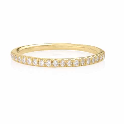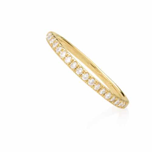 * טבעת זהב 14 קארט משובצת 21 יהלומים לבנים של נקודה, סה״כ משקל היהלומים: 0.21ct, צבע וניקוי : VS-G. עובי טבעת : 1.8 מ״מ