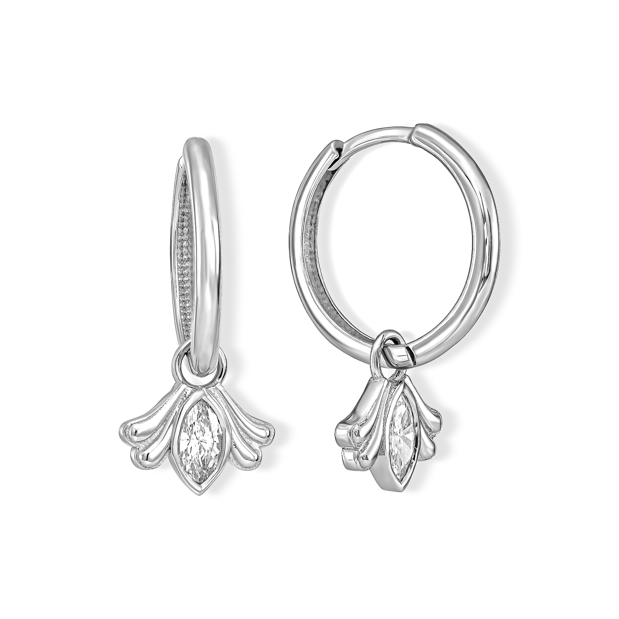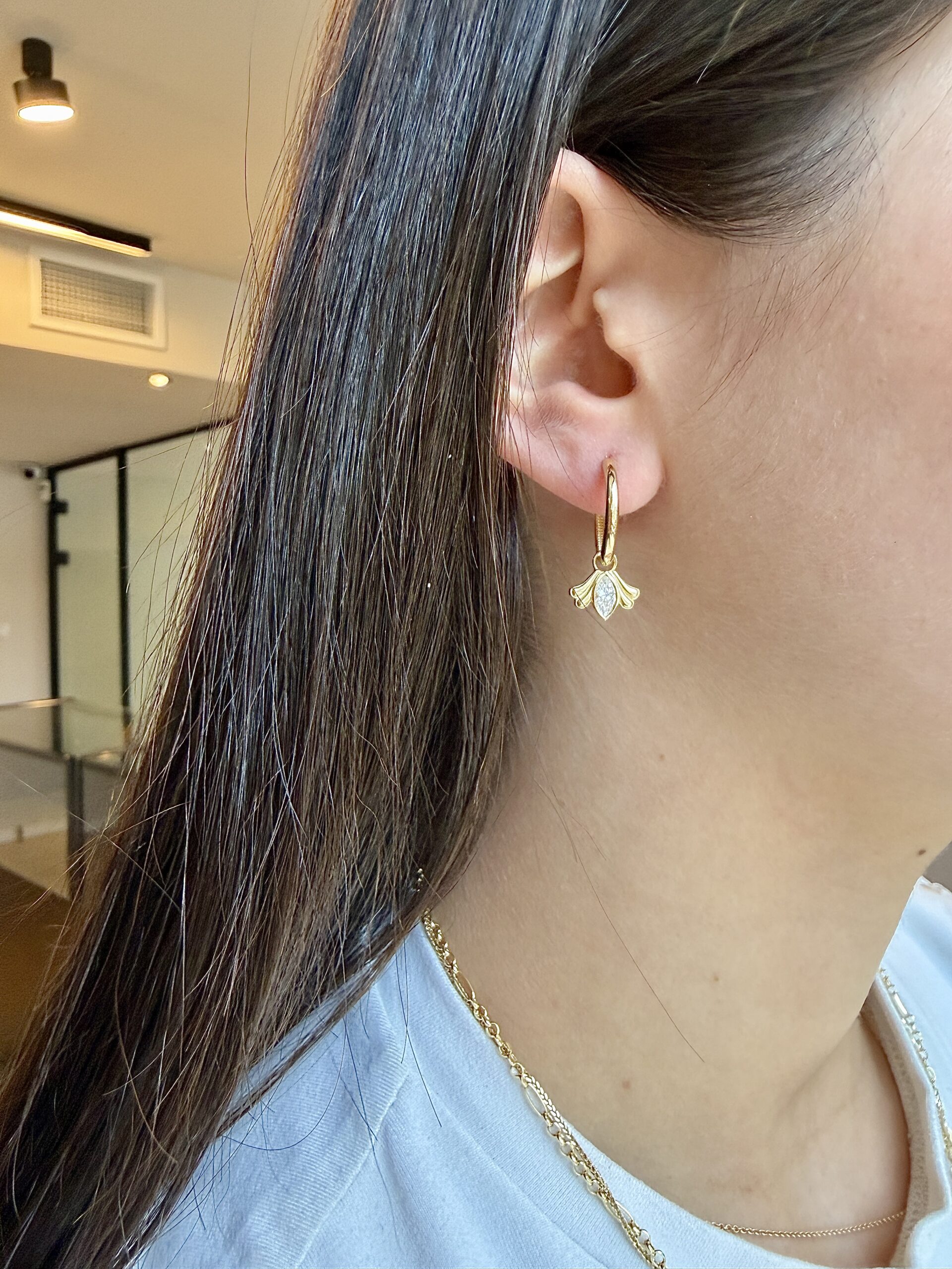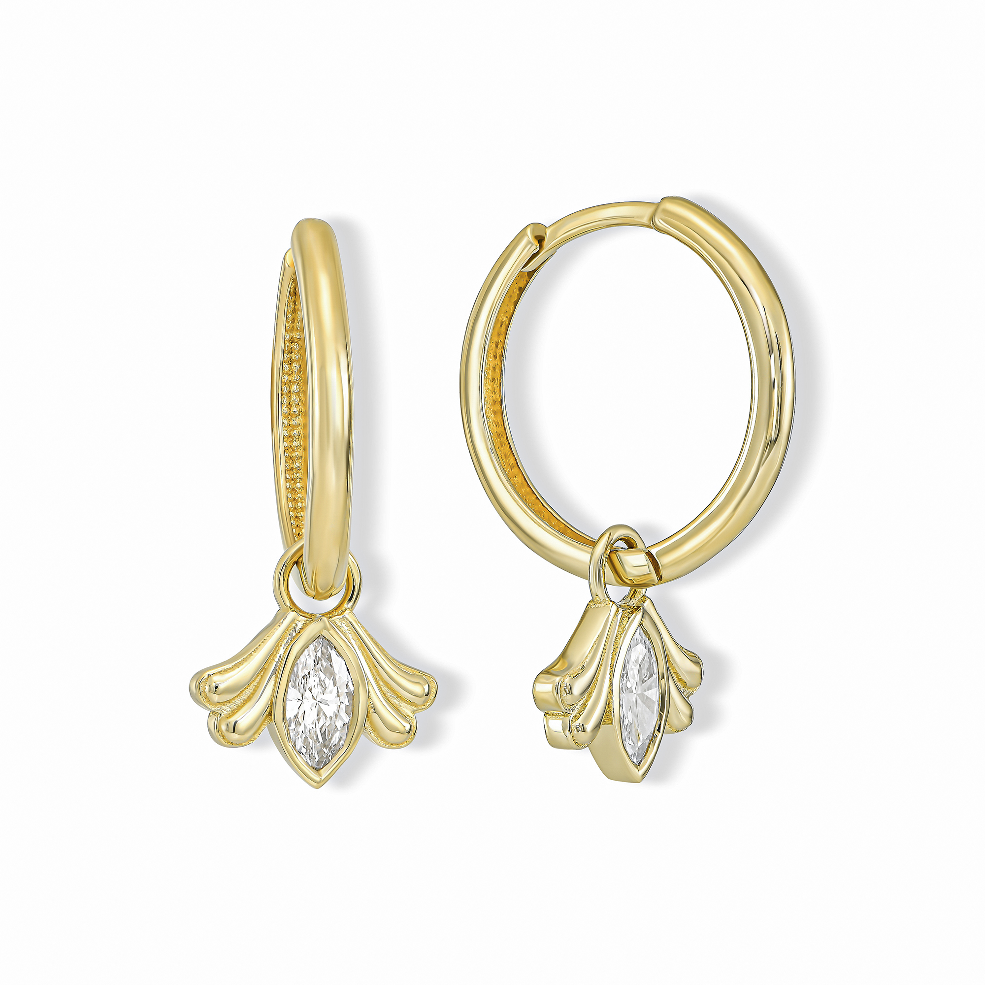 עגילי חישוק עם תליון מרקיזה לבן עם אלמנט זהב מעוצב בצדדים