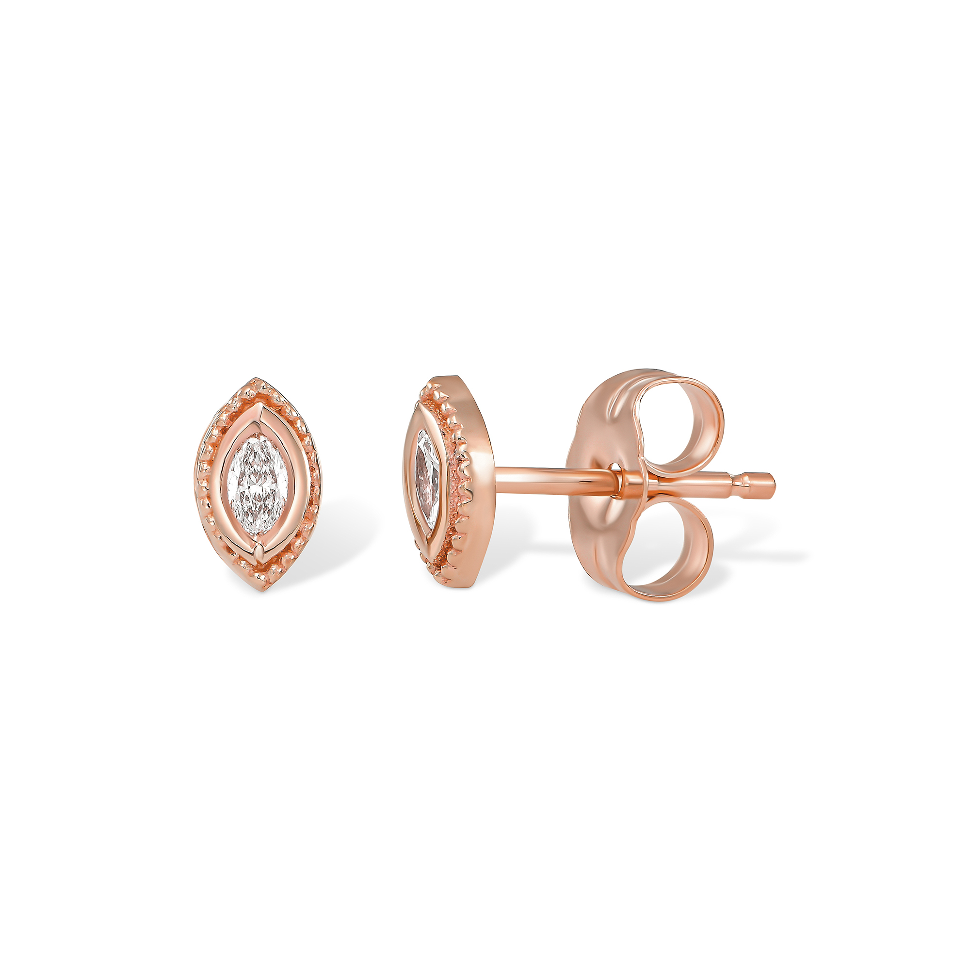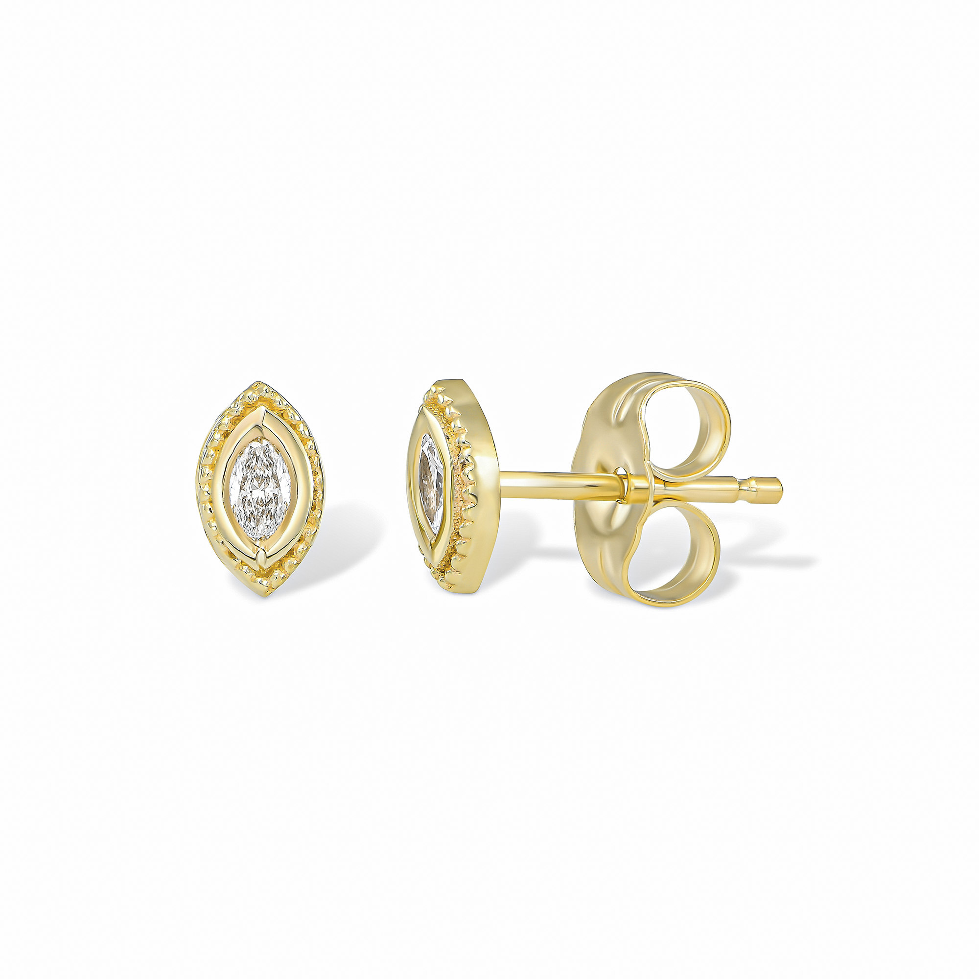 בכל עגיל משובץ יהלום לבן בחיתוך מרקיזה במשקל ממוצע של : 0.04ct