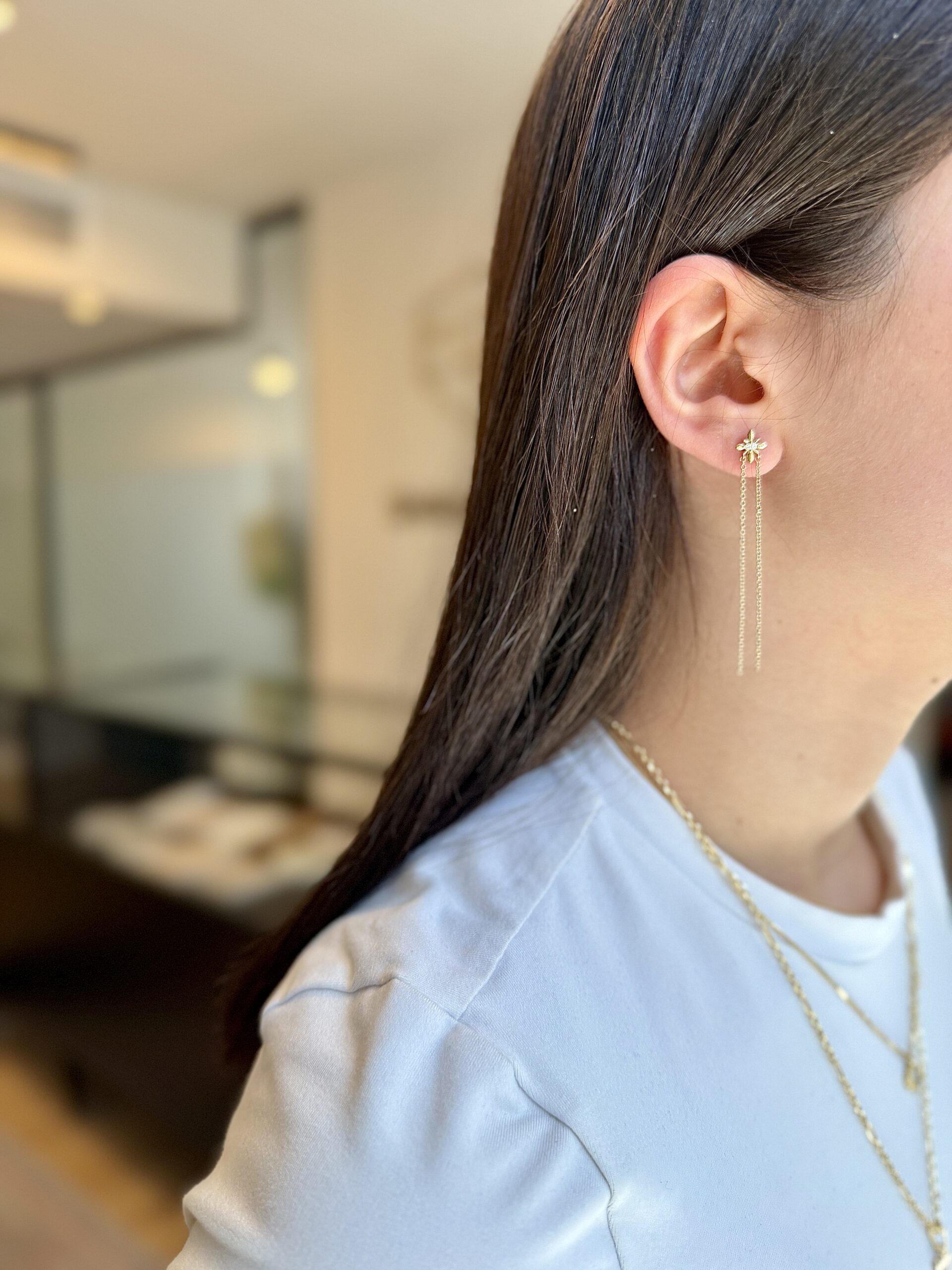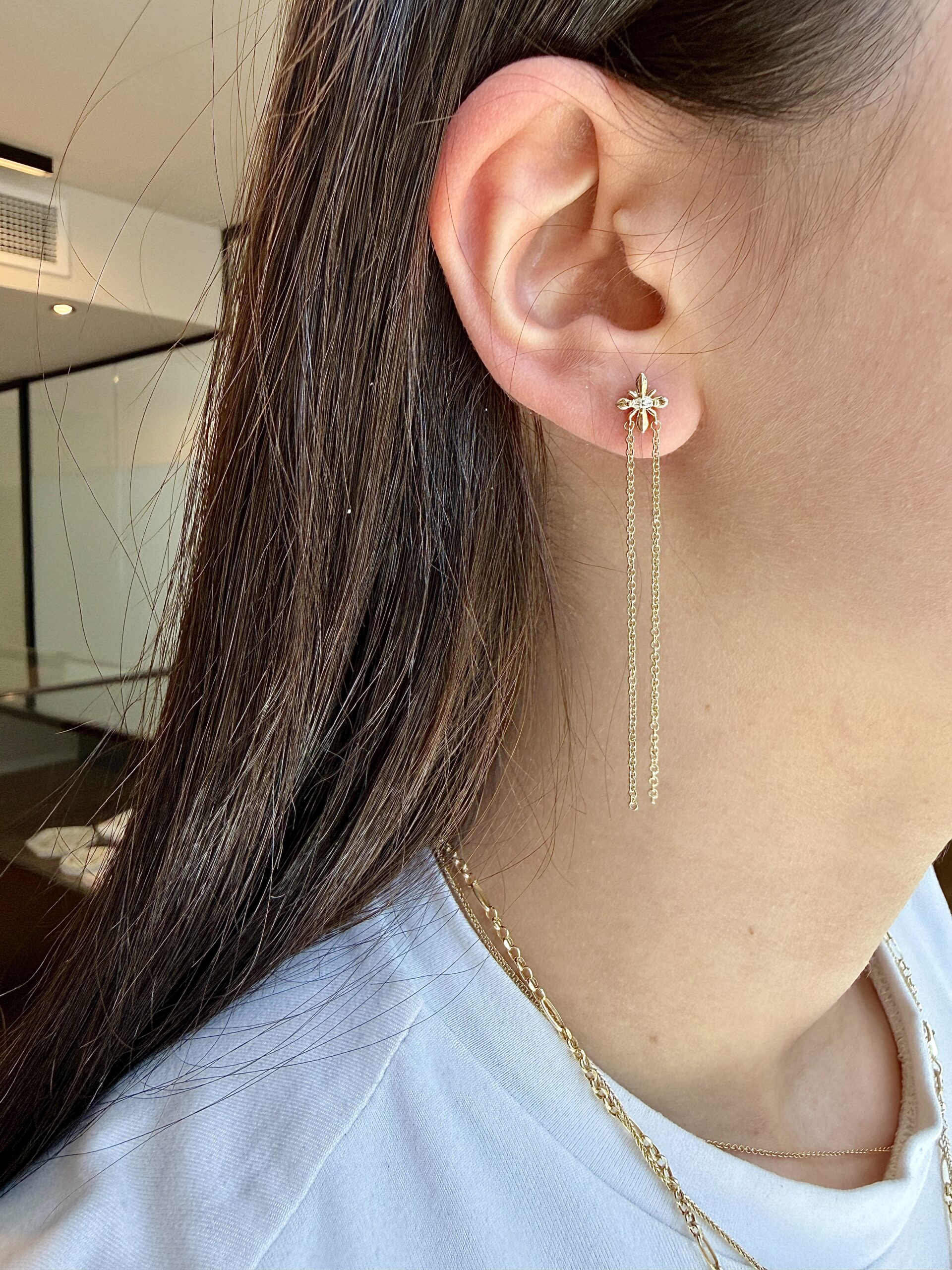 השרשראות הדקות נופלות מהאוזן בקו ישר, ויוצרות אורך ותנועה שמגיבה לכל תזוזה וזה כל כך מושלם.